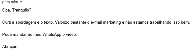Nada melhor do que receber uma resposta positiva quando tá prospectando, certo? Errado. Melhor do que isso é receber uma resposta positiva + acertar a dor do prospect. Bingo! Saca só essa resposta que recebi: Esse é o meu cliente ideal: Valoriza o email, sabe que precisa e quer melhorar isso. 🥳🥳🥳🥳 Motivo de festa por aqui. Tive uma reunião com esse cliente pra eu explicar todos os detalhes de como funciona o meu trabalho e como eu poderia ajudar. E também ouvi as necessidades dele e do que...